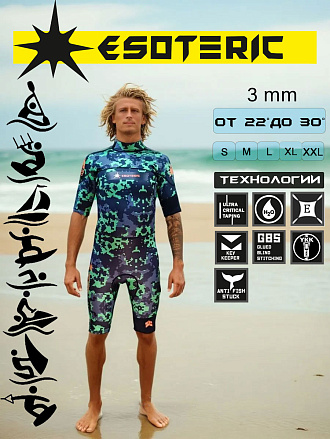 Яркий и выразительный дизайн гидрокостюма в стиле Esoteric ставит его продвинутым особняком выразительности и прет-а-порте андерграунда серфового стиля, на фоне скучных коллекций, повторяющих друг за другом дизайнов — серых, неповоротливых и скучных динозавров серфовой индустрии.