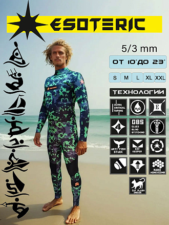 Современный, прочный и технологичный гидрокостюм Esoteric Zeus 5/3 Camoplush — лучший выбор для прохладной воды. Эргономичный крой, эластичный неопрен Ezoflex, прочные герметичные швы и задняя молния обеспечивают тепло, комфорт и долговечность. Дополнительная защита коленей продлевает срок службы гидрокостюма.