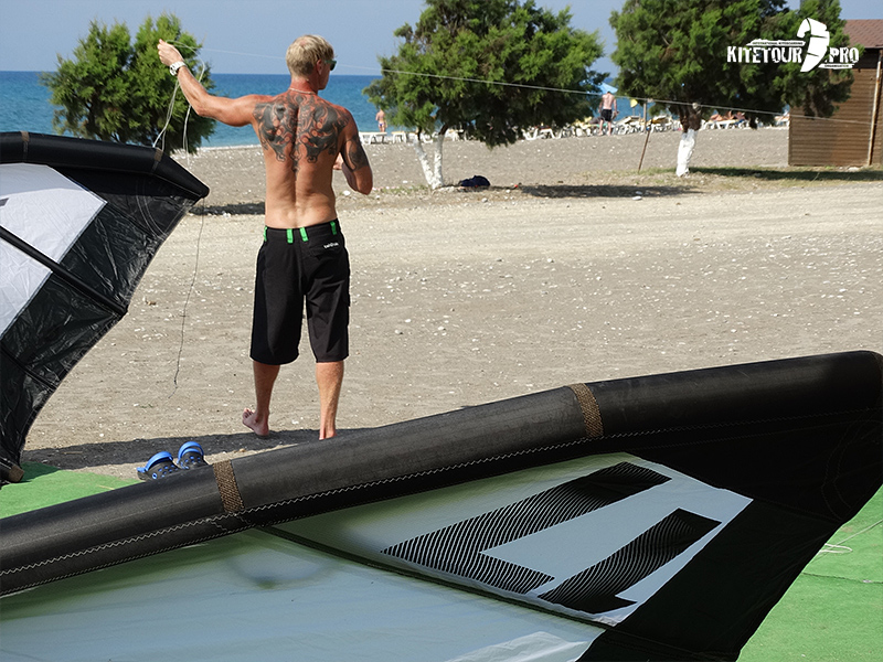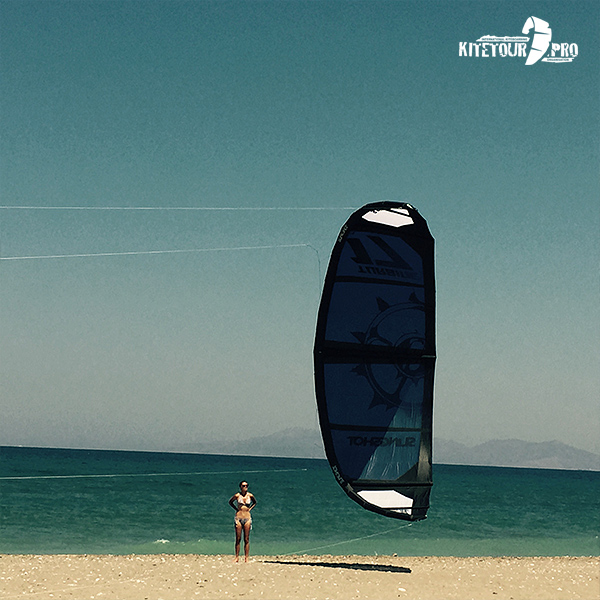 На кайт лагерь на Родосе kitetour.pro привезли много разных размеров и форм кайтов, но самым запоминающимся из них был 17 метровый кайт Slingshot Turbina 2015 года.