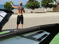 Начали тестировать наш комплект мы при 5,5 узлах, естественно такого слабого ветра нам не хватило, и пришлось вернуться в точку с применением бодидрага с доской в руках. Подраздуло до 6 узлов, и Леонид Разумовский вернулся в точку старта при подвижной глубокой воде, исподьзую пампинг, пару тройку махов и долгие галсы. Еще подраздуло до 7 узлов. Стало комфортно возвращать в точку старта, и появилась возможность прыгать невысокие трюки на крюке. При 8 узлах появился сильный апвинд и возможность сниматься с крюка. И наконец при 9 узлах Turbine превратилась в тянущий и мощный кайт с мощным апвиндом и возможность тренировать анхукед и аирстайл. Удивительно то что в 12-13 узлов, когда остальные пытаются вымахивать на 13 и 14 кайтах, турбина превратилась в серьезный и стабильный «риксон», и тянула как настоящий локомотив, при этом не напрягая передозом, за счет работы тримера. ну а 15 узлов у нас тестрировала только Елена, и ей было многовато, но не критично.